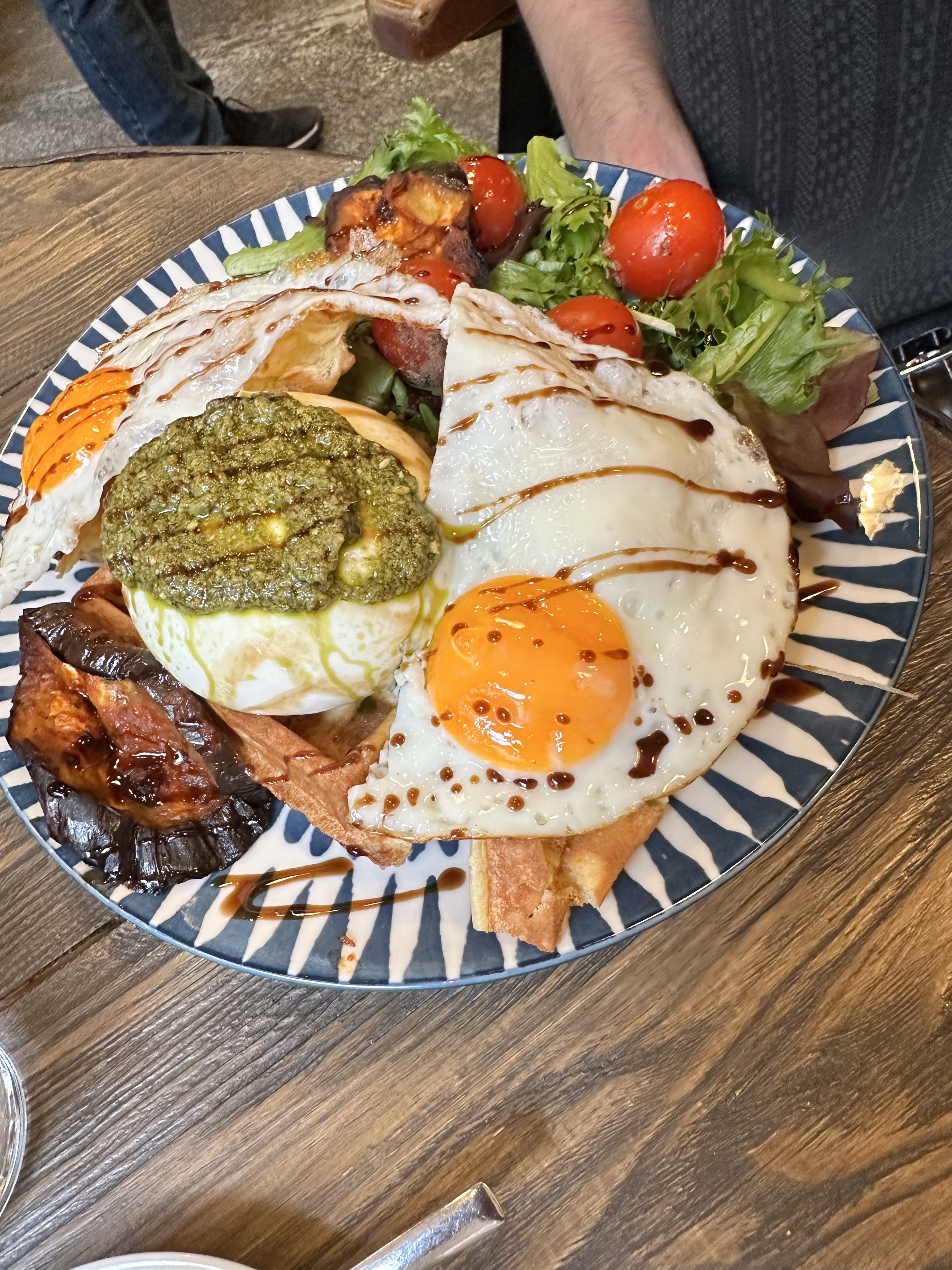My husband’s waffle and eggs from Hungry Biker because my breakfast was a little less interesting that morning!